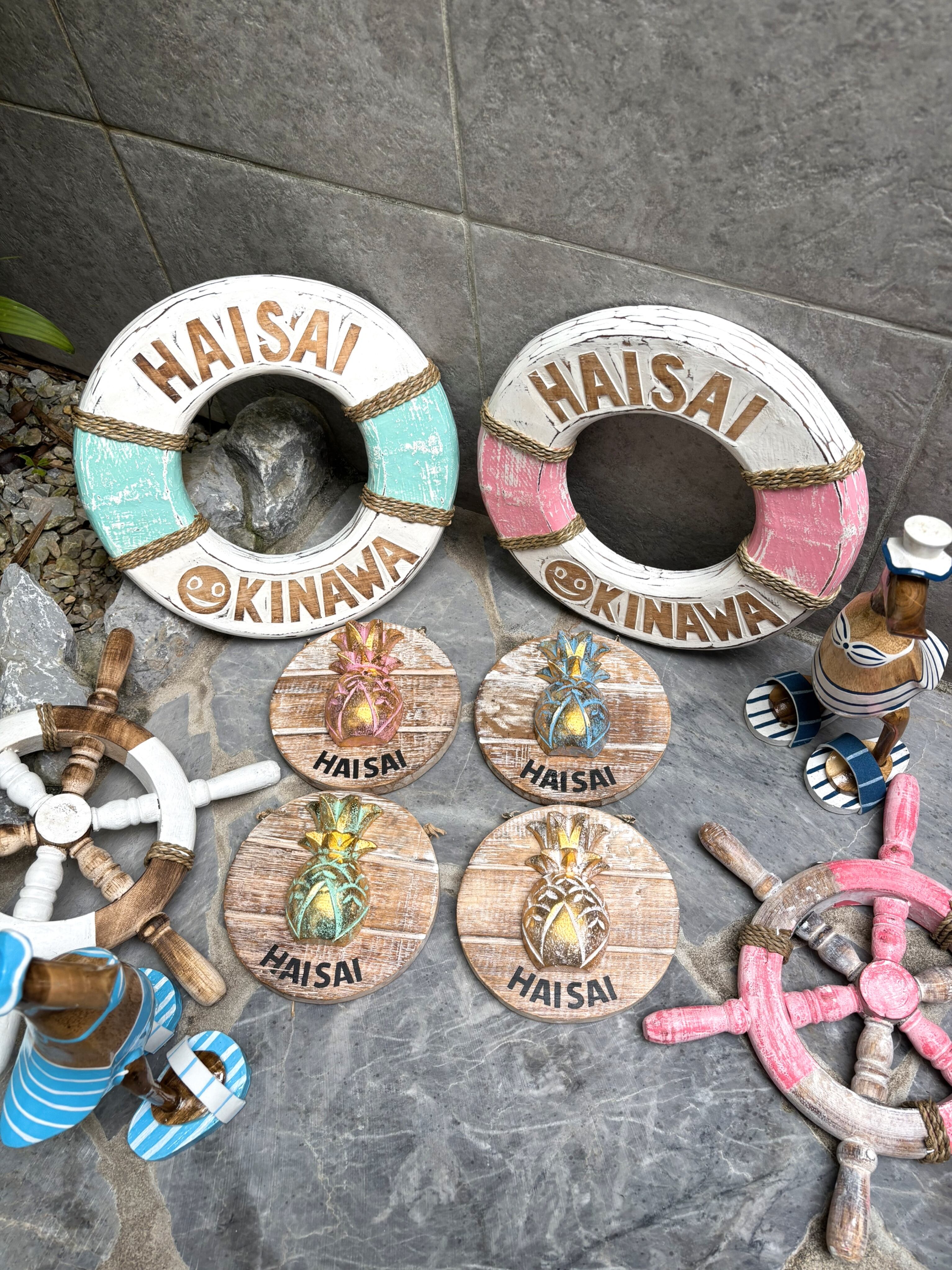 木彫りのパイン、ハイサイバージョン サイズ 直径14.5cm 厚み4cm