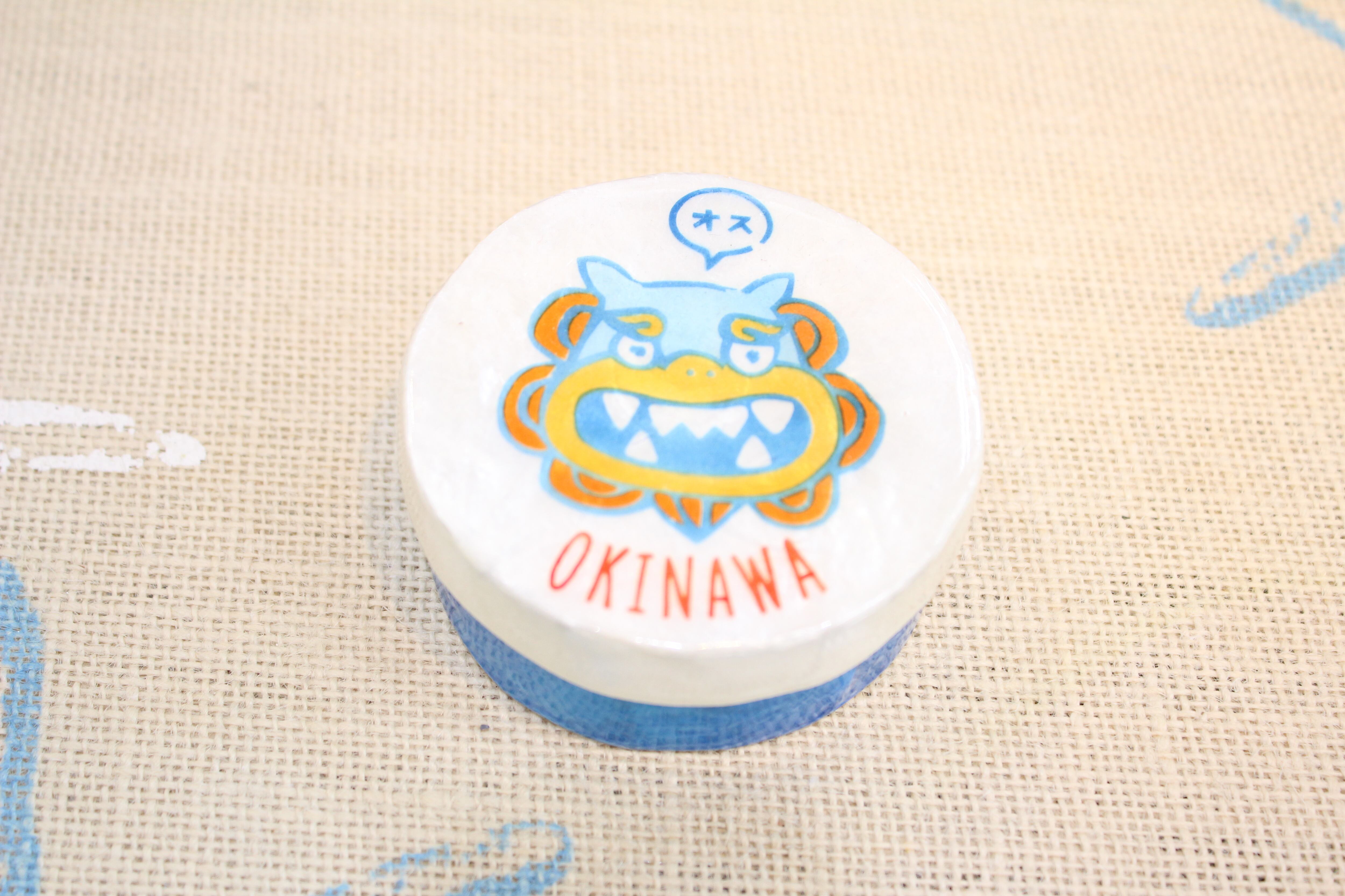 貝がらで作られた小物入れです。 沖縄の守り神、シーサー柄⭐️ 当店オリジナル商品です。 直径約7.5cmで高さ約3cm