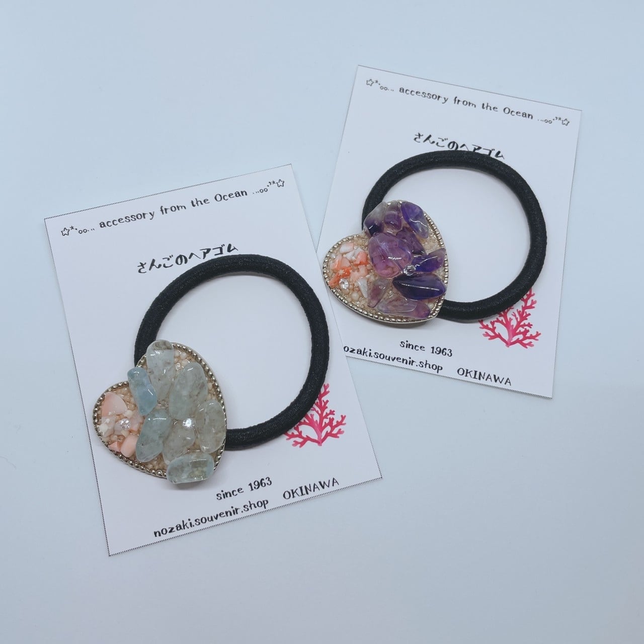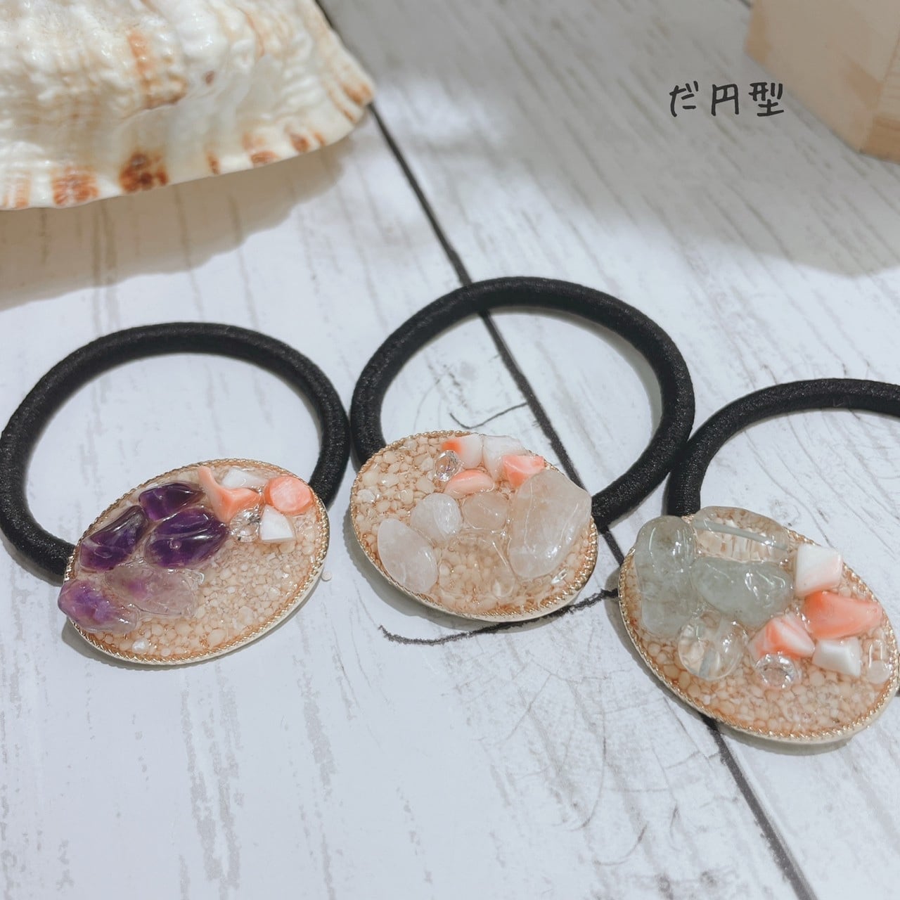 人気天然石とサンゴのコラボレーションヘアゴムです⭐️ しっかり量を入れて、立体的に仕上げました。