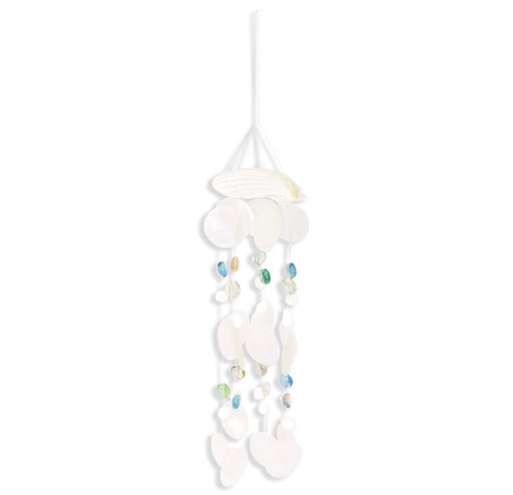 シェルとガラス玉を組み合わせた、見た目もさわやかなオーナメント。窓辺に飾ればキラキラと輝きます。