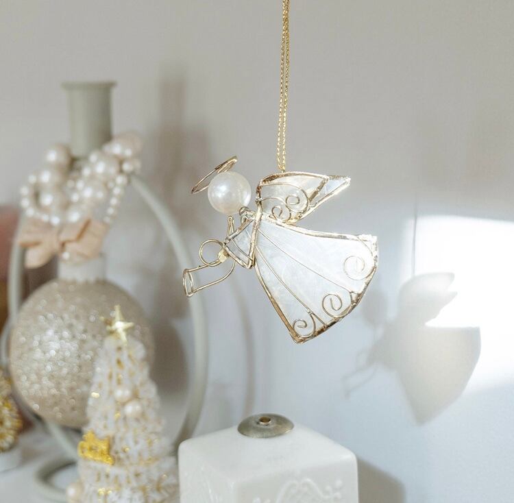 金属とシェルがゴージャスにミックスされたオーナメント。