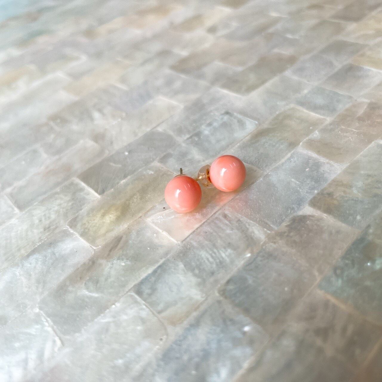 海の宝石 ピンクサンゴのピアス。 18金 直結タイプ 天然の「ふ」や層がみられる場合がございます。 ご了承ください。 サイズ 直径7mm
