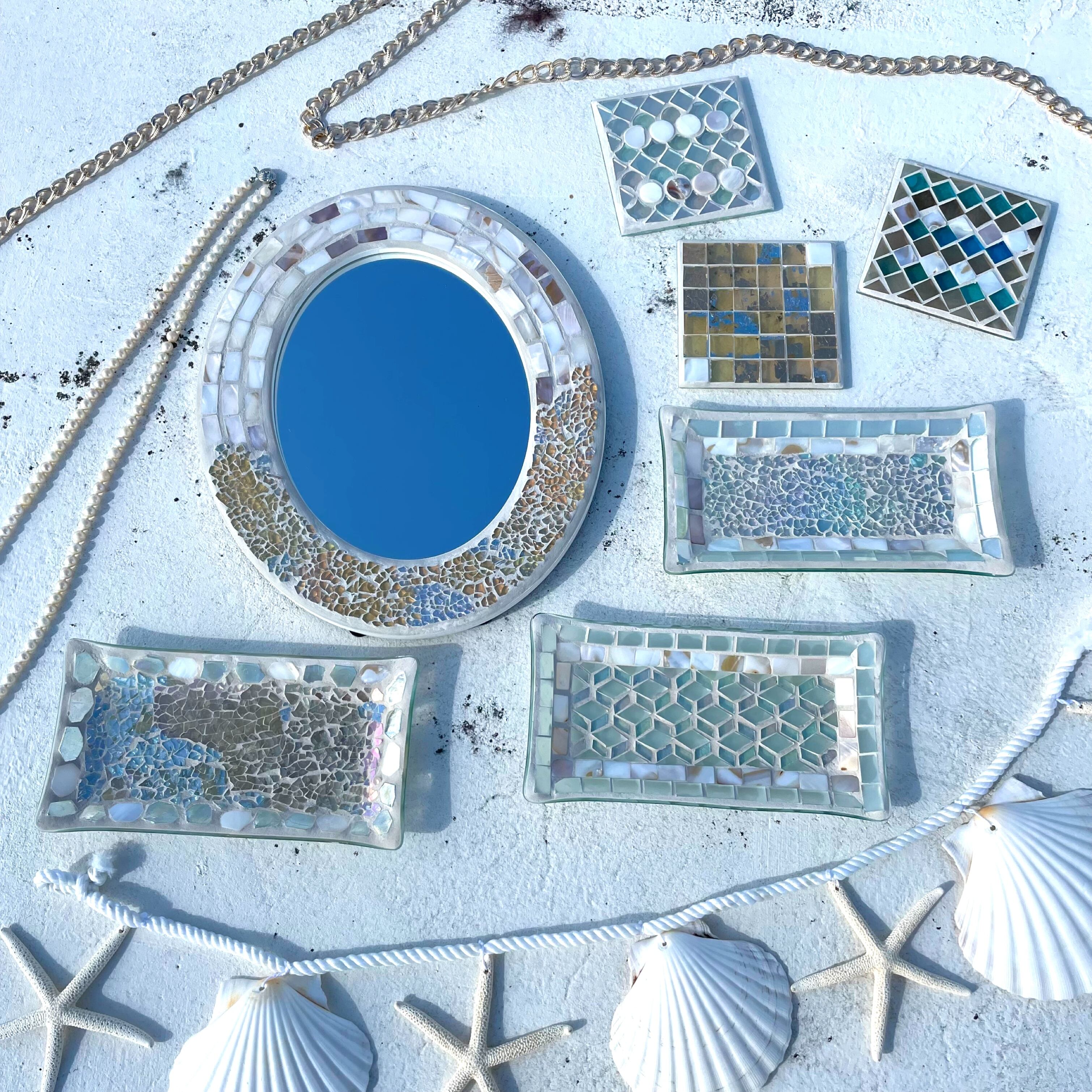 シェルとガラスモザイクが美しいトレイ サイズ 20cm × 10cm