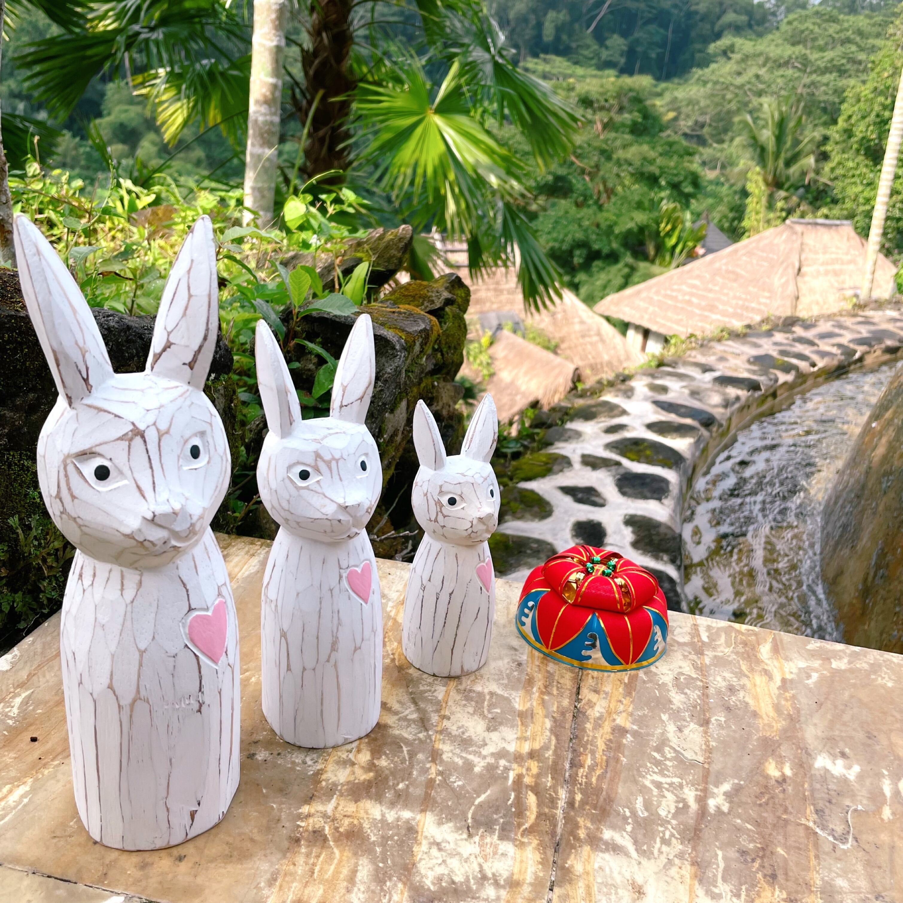 温かみ溢れる木彫りのうさぎさん キリッとした目とかわいいハートのギャップにやられます❤️ サイズS 15cm