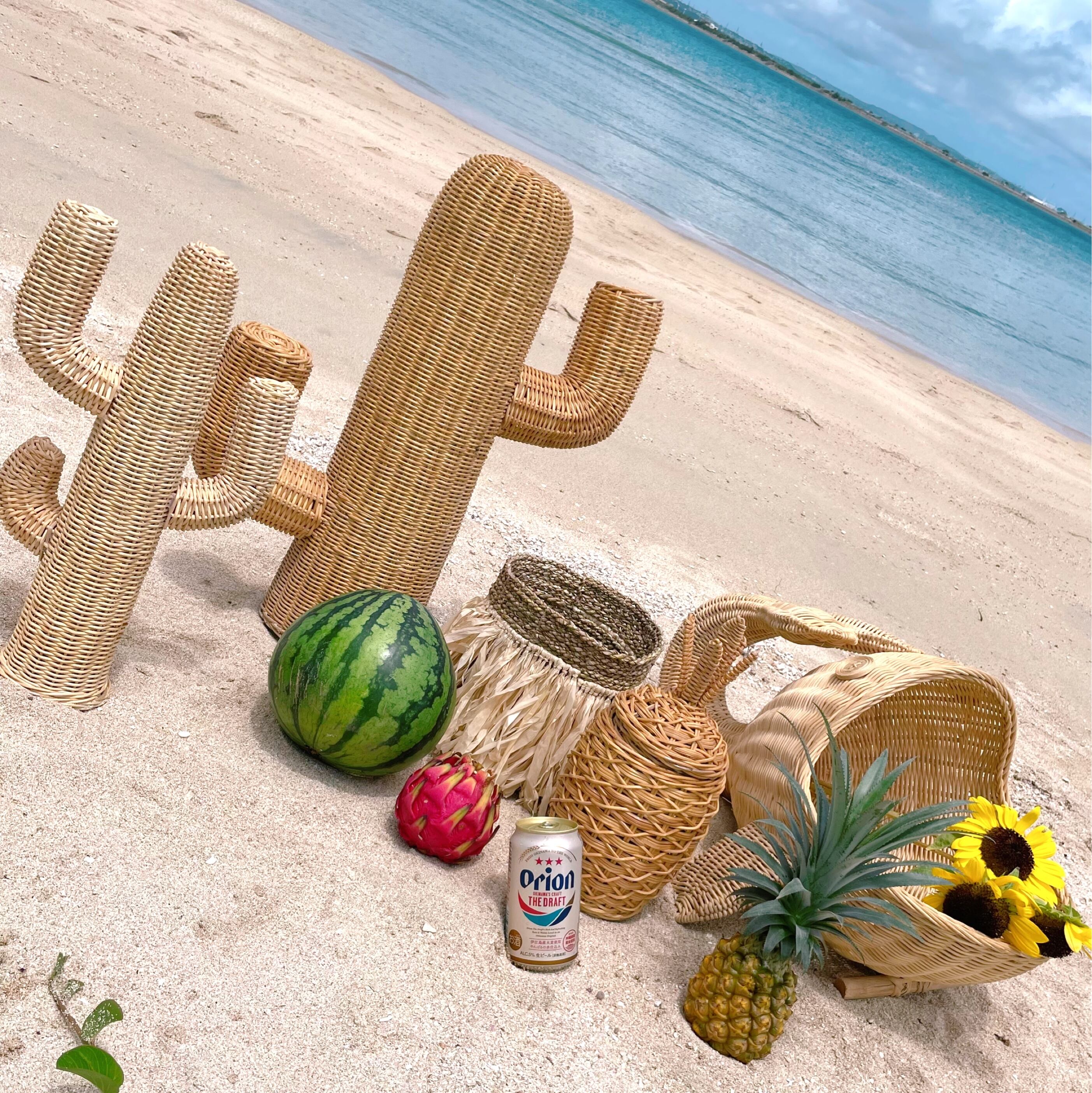 ラタン編みの大きなサボテン サイズ 高さ43cm 横26cm 奥行10cm